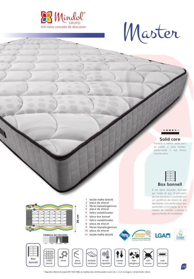 Combinação de Solid Core e Box de molas Bonnel, com um periférico de eliocel de alta densidade, que dá uma maior área de conforto e maior firmeza ao colchão.